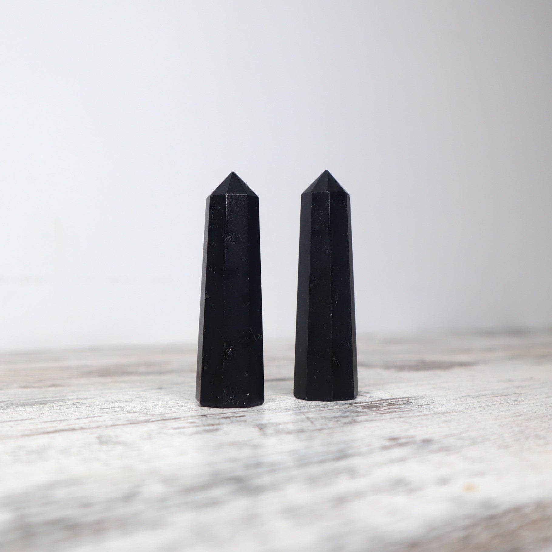 Polished Black Tourmaline mini tower – approx. 7cm tall | 40–50g – rich matte black with subtle natural texture and strong grounding energy