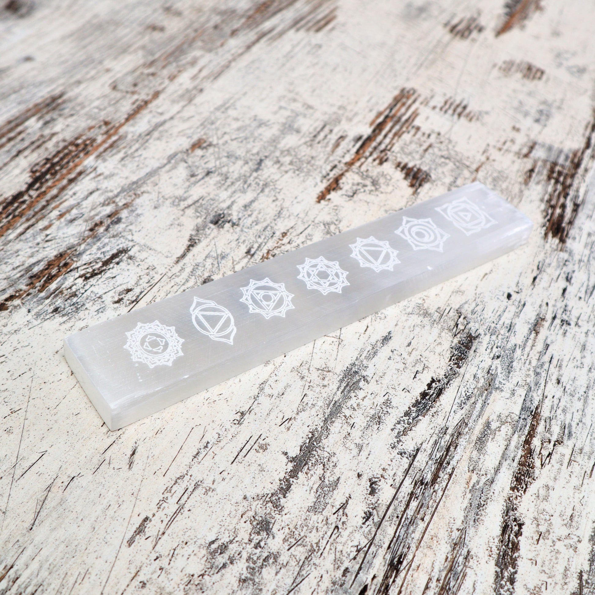 Use this set to activate each chakra through meditation, energy healing, or daily intention work. The engraved plate serves as a sacred surface to rest, charge, or display your crystals — enhancing their vibration and symbolic meaning.