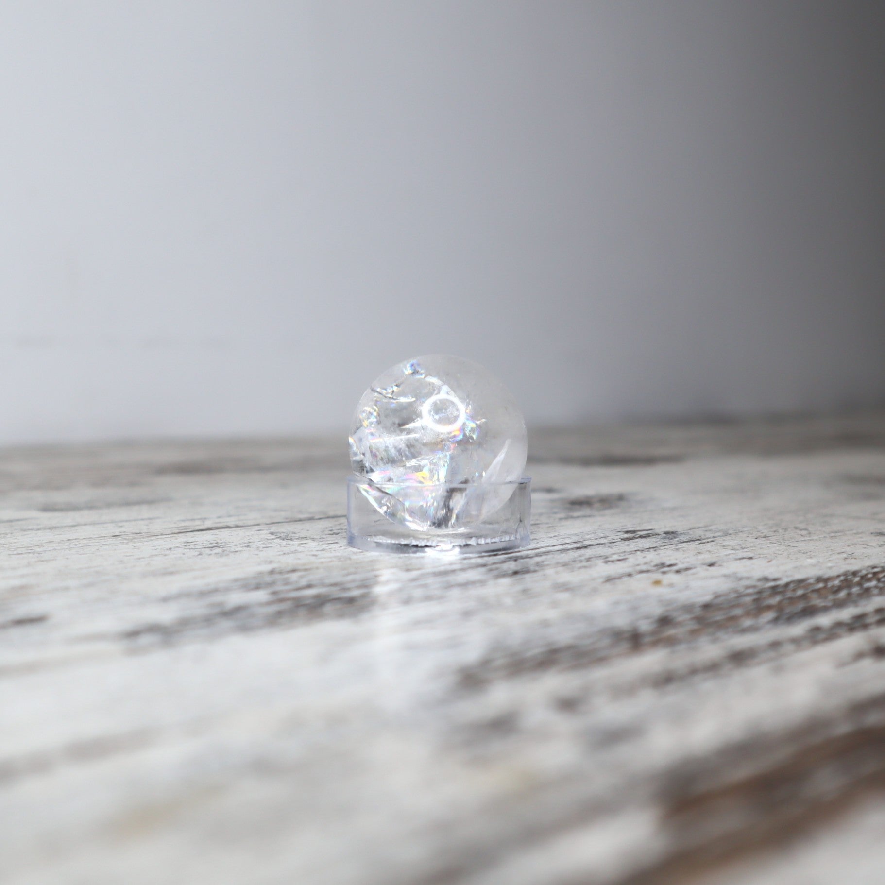 Polished Clear Quartz mini sphere – approx. 30mm – bright, luminous, and filled with internal rainbows that catch the light beautifully