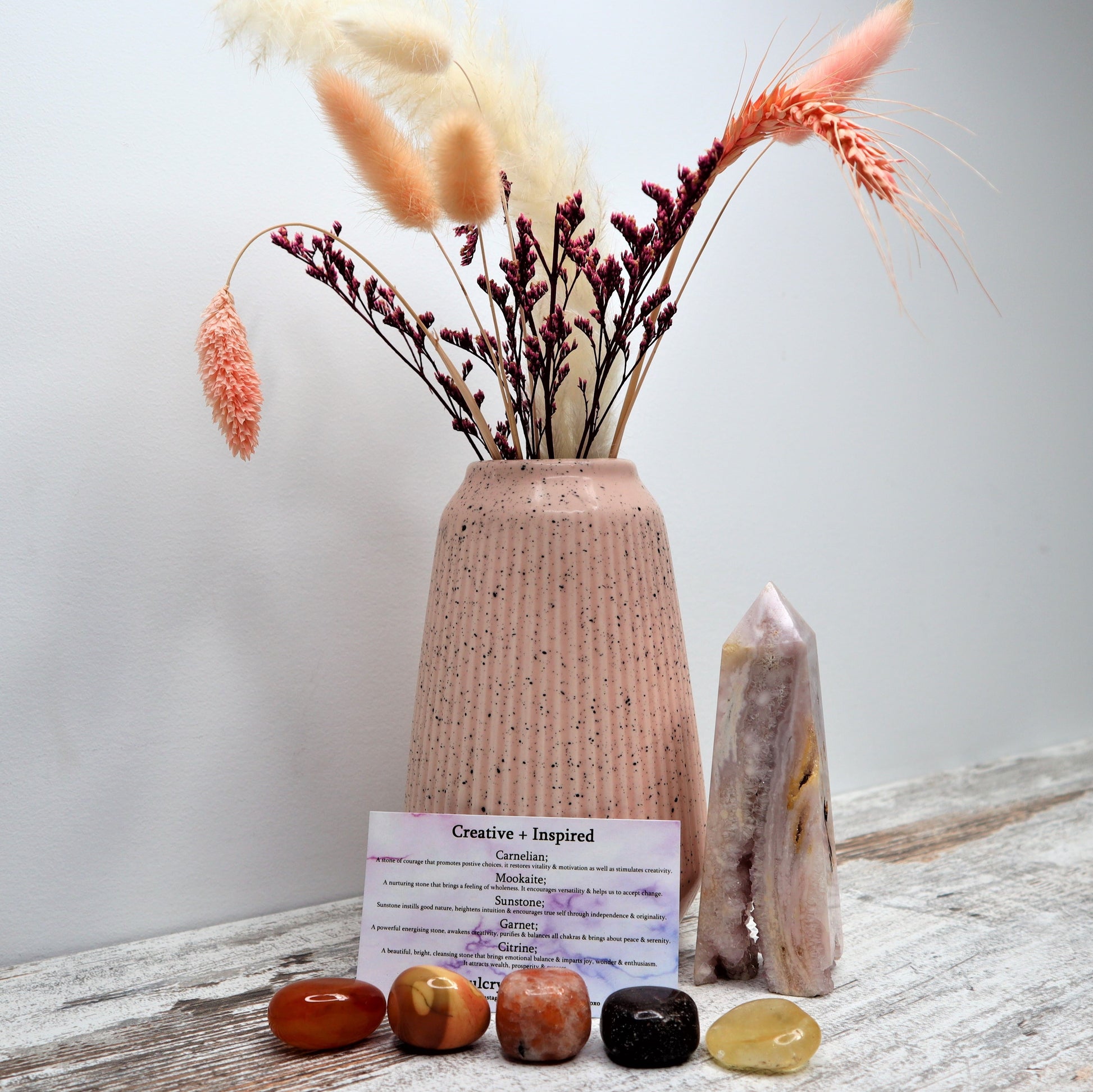 Vibrant, fiery, and full of soul — our Creative + Inspired Crystal Kit is your spark of magic when you're ready to create boldly, express freely, and follow your passion with confidence 🎨🔥