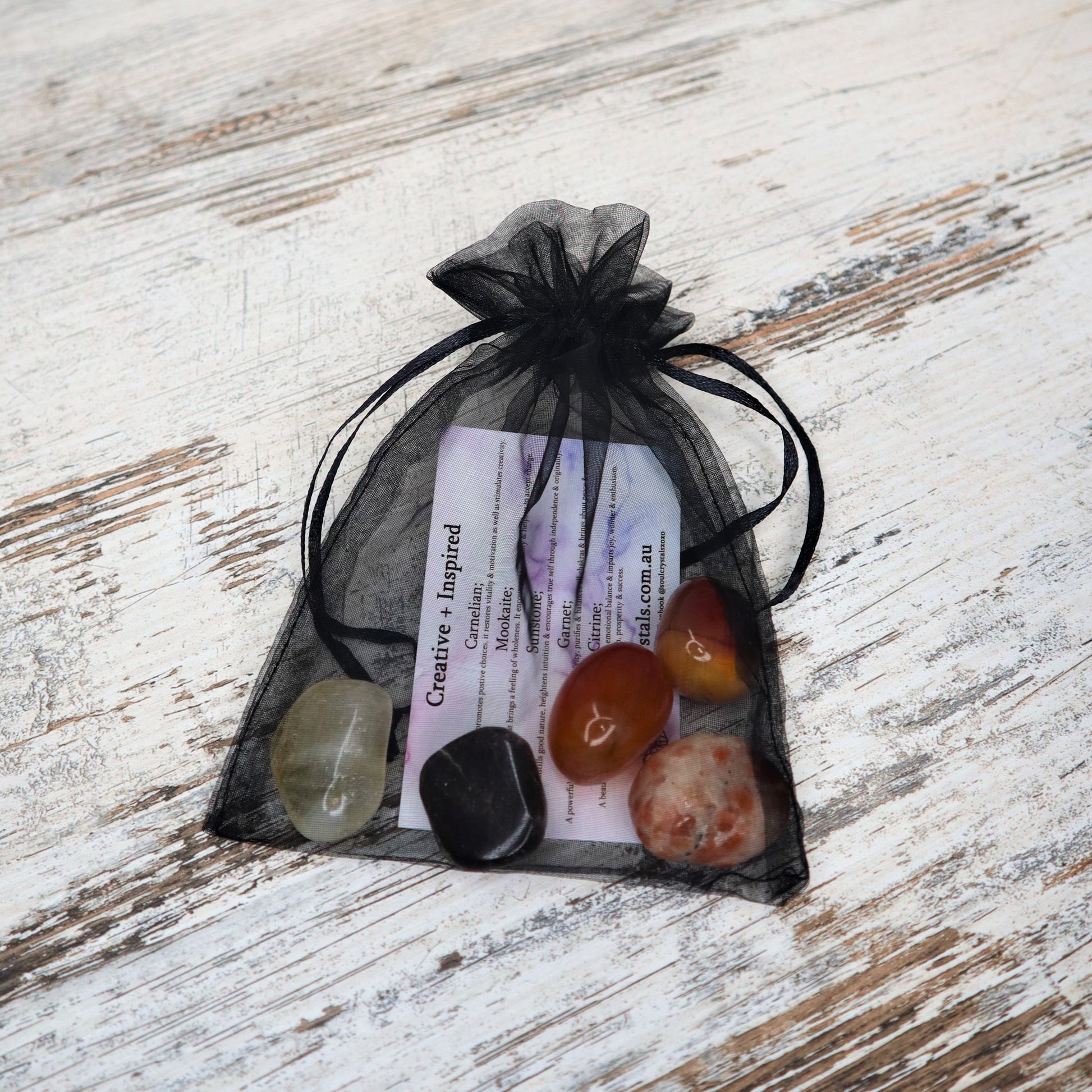 – Includes 5 empowering tumble stones + a properties card