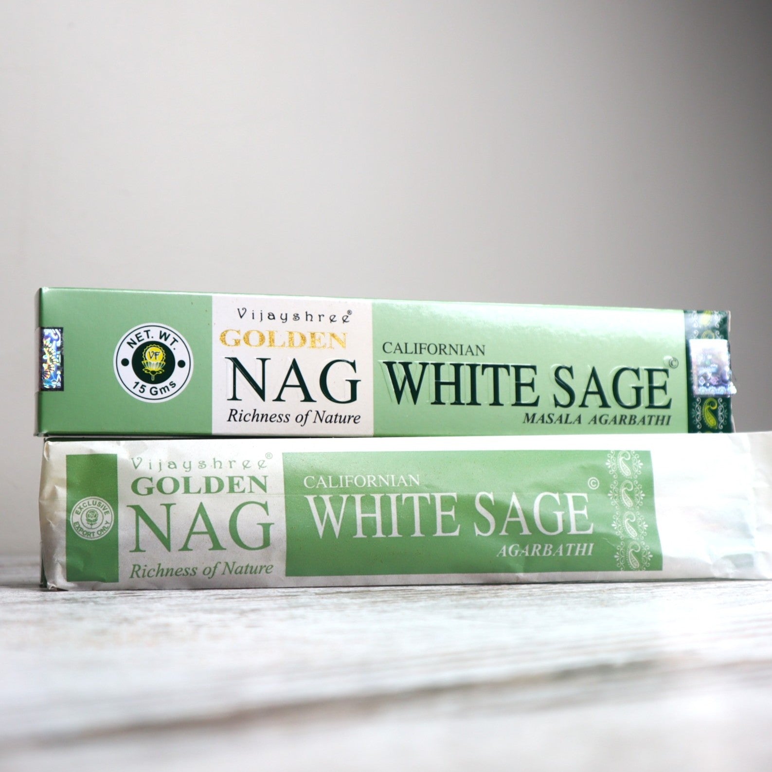 Cleanse your space and spirit with the sacred scent of Golden Nag White Sage Incense 🌬️