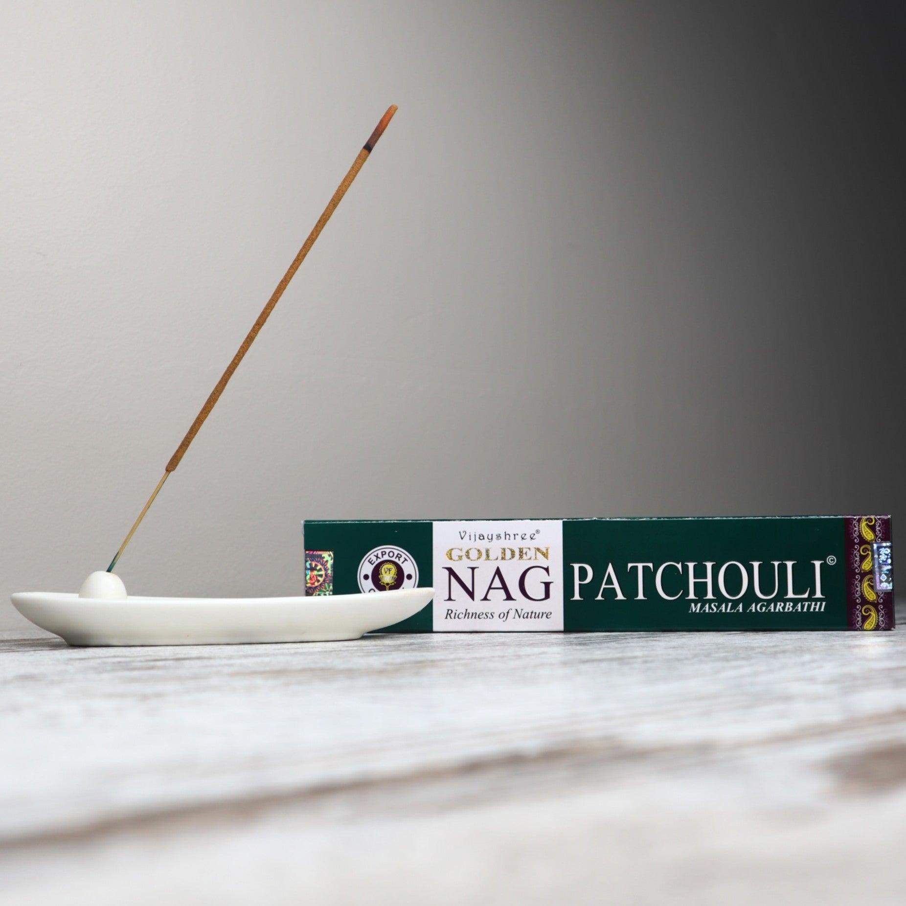 Sink into soulful stillness with the earthy, grounding energy of Golden Nag Patchouli Incense 🌿