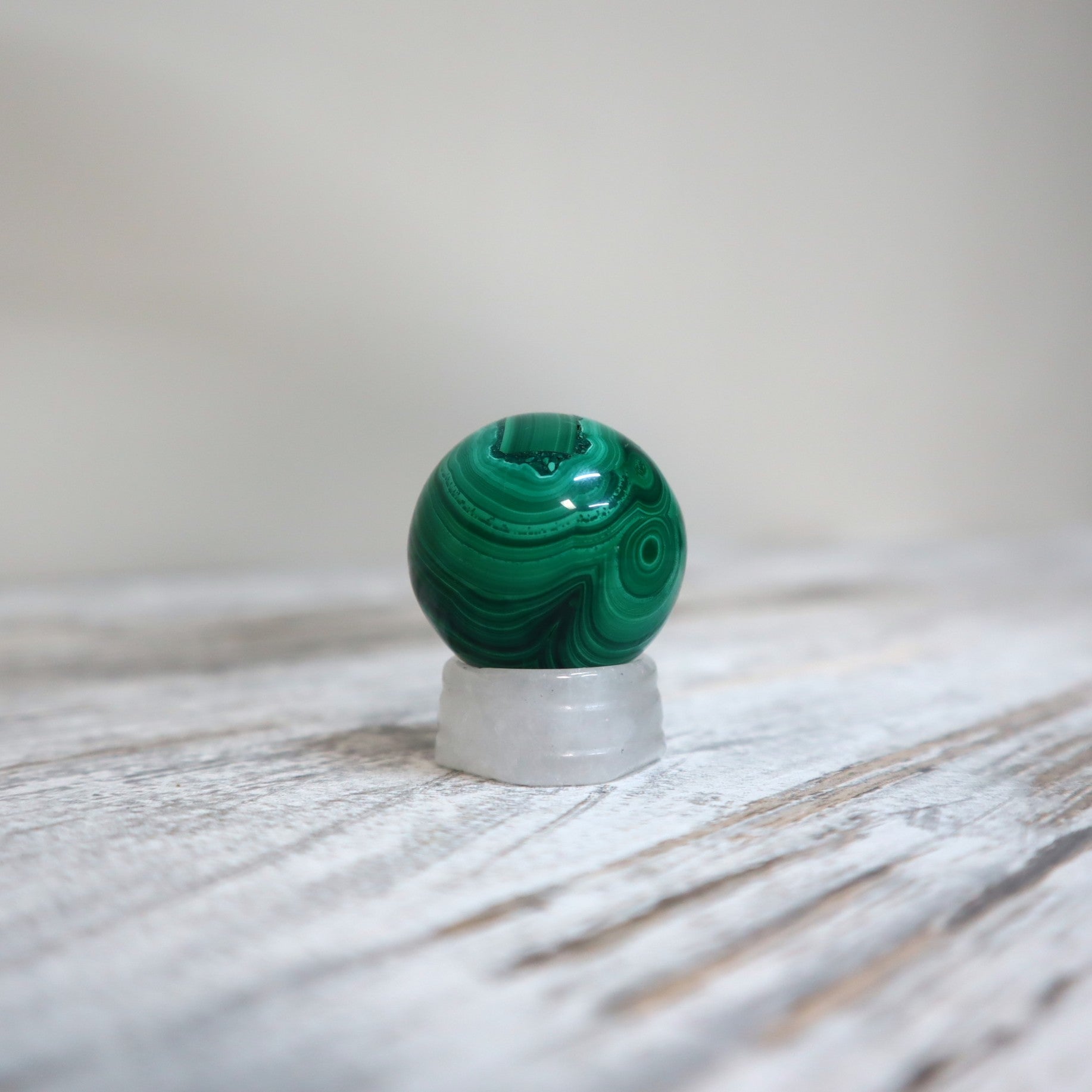 - **Malachite Sphere:** approx. 35mm – rich green with banded patterns; grounding and powerful