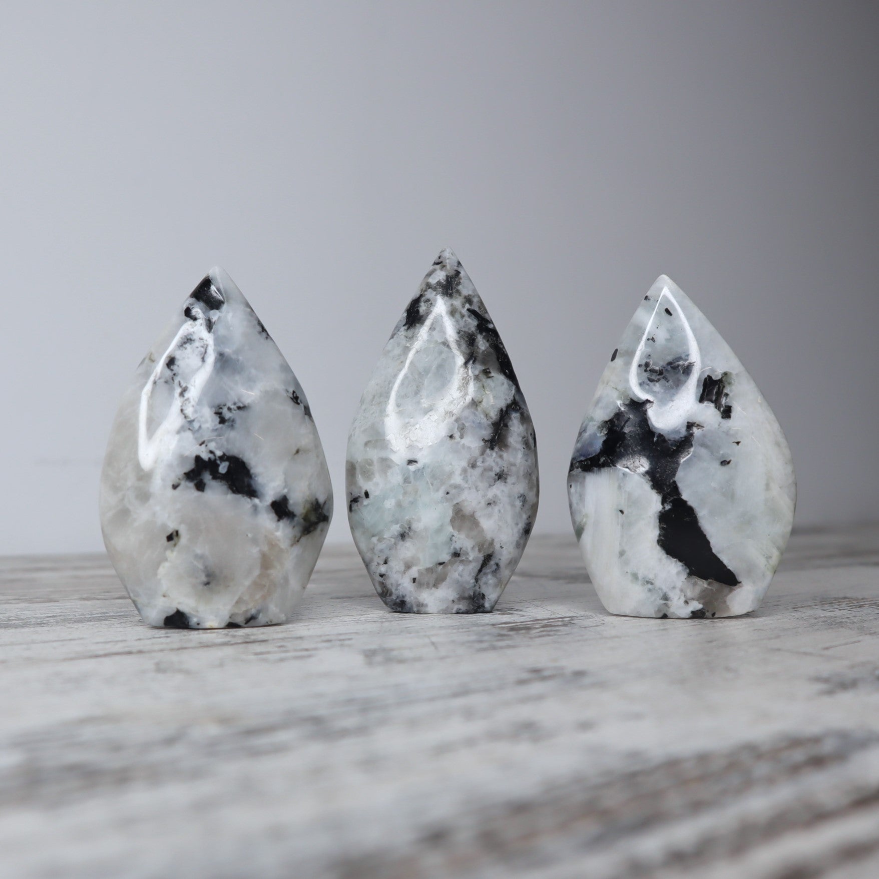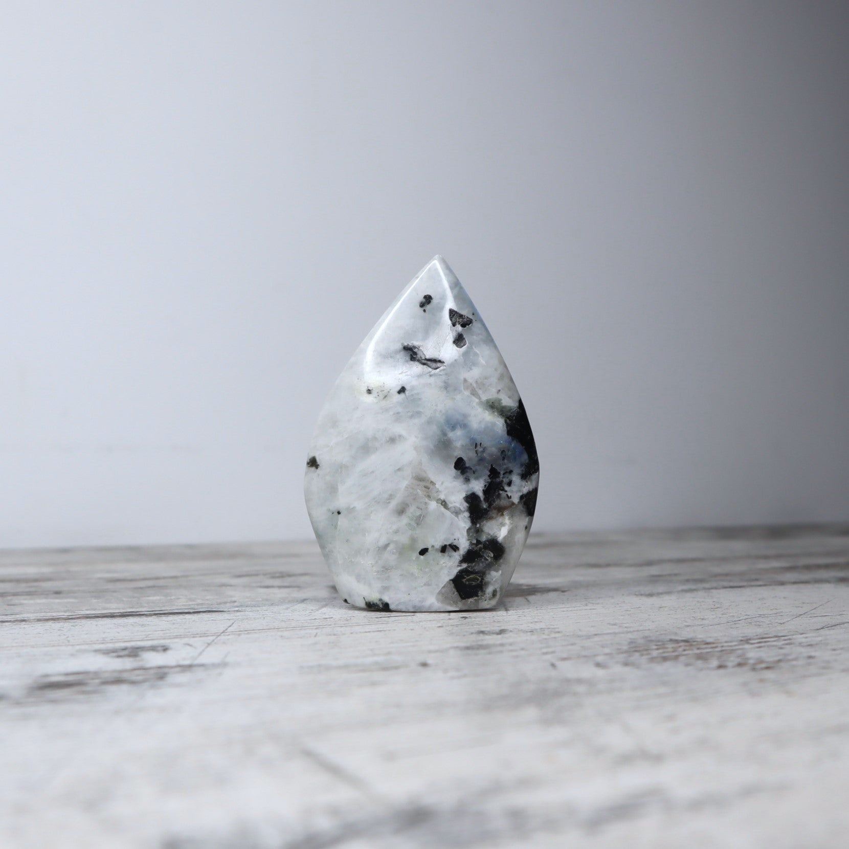 Rainbow Moonstone’s energies activate and align all chakras, allowing energy to flow freely. It is a very soothing stone with vibrations full of calming and uplifting energy. Rainbow Moonstone is thought to bring balance, harmony and hope while enhancing creativity, compassion, endurance and inner confidence. It is believed to help strengthen intuition and psychic perception, especially offering us visions of things that aren't immediately obvious.