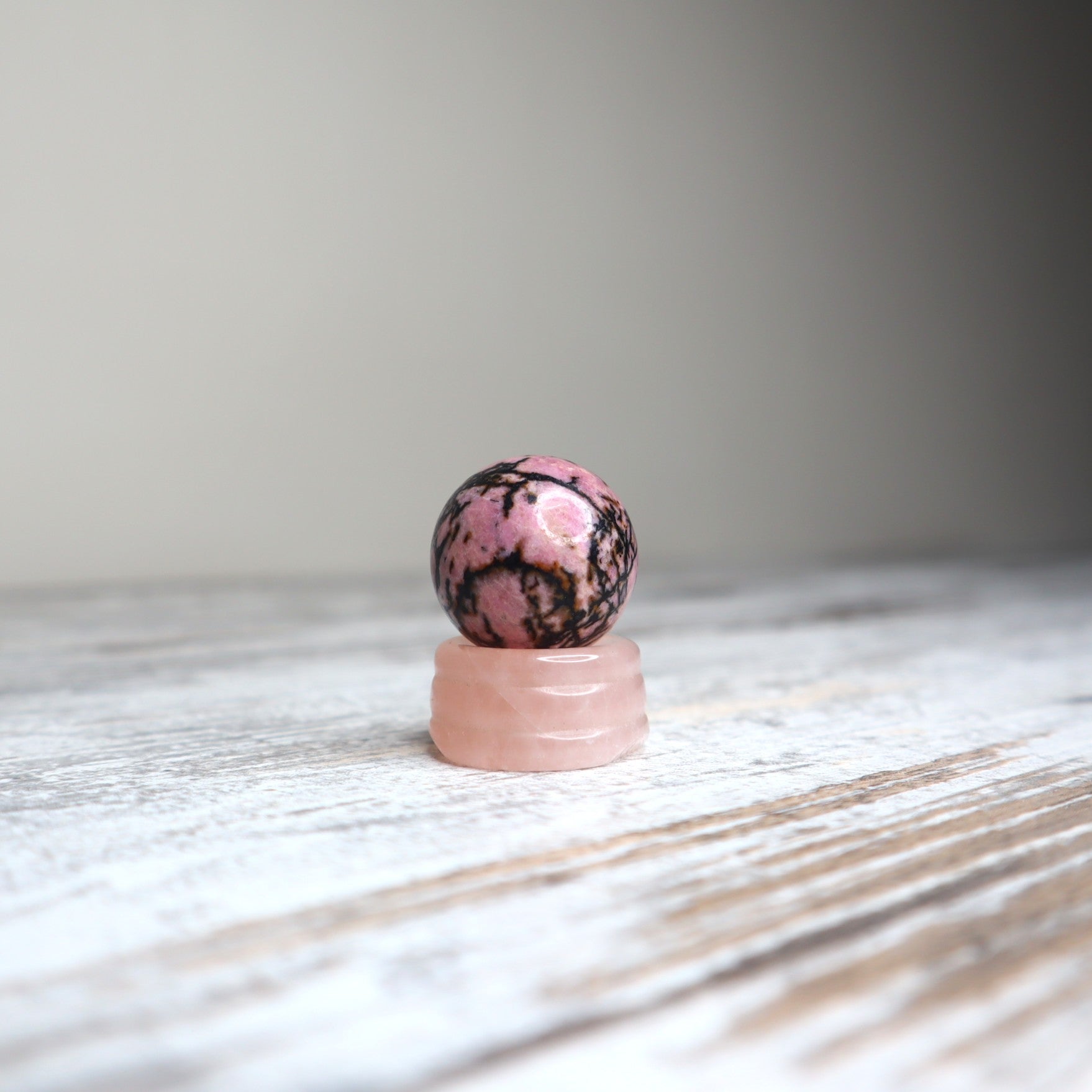 1 x Rhodonite Mini Sphere (Rose Quartz Stand Included)