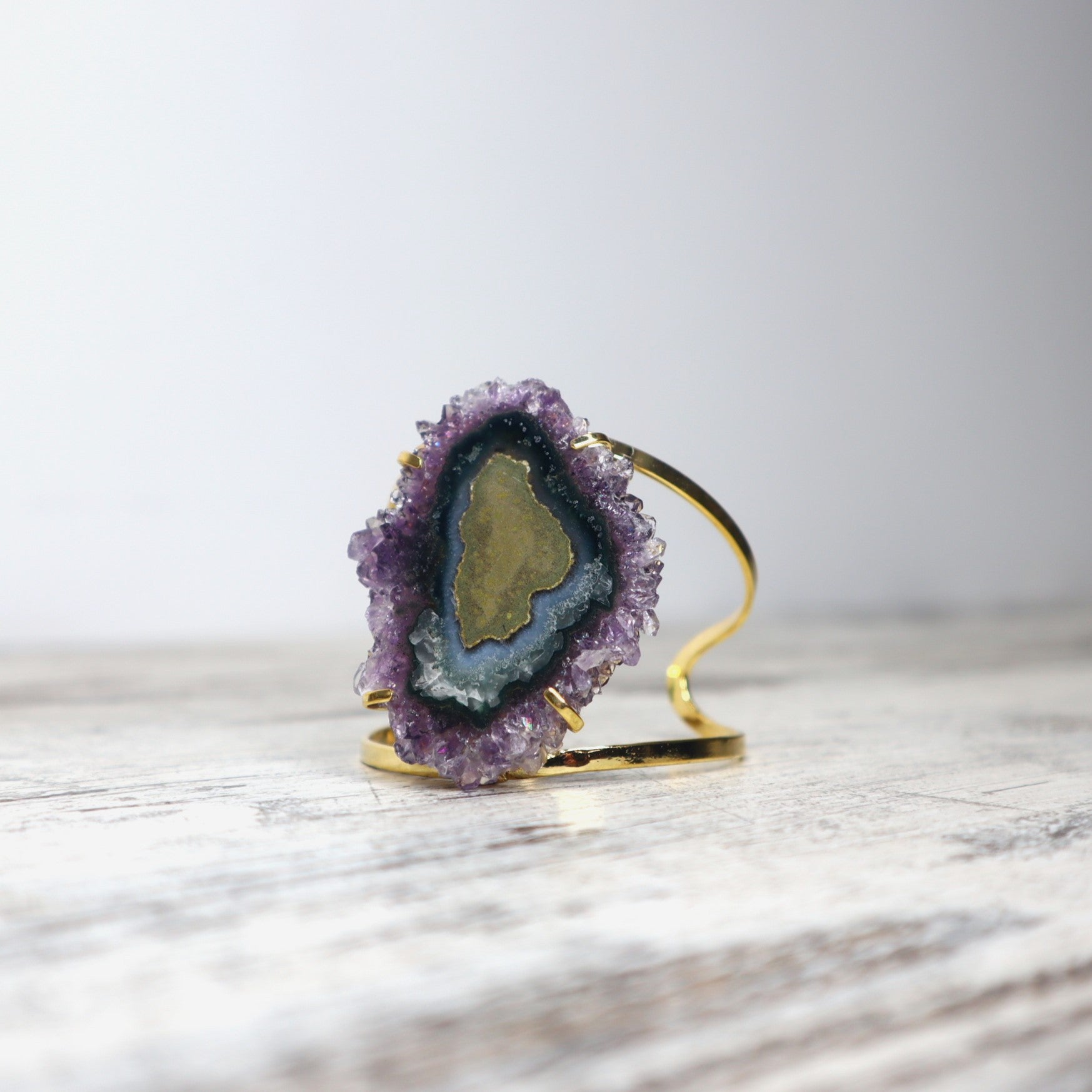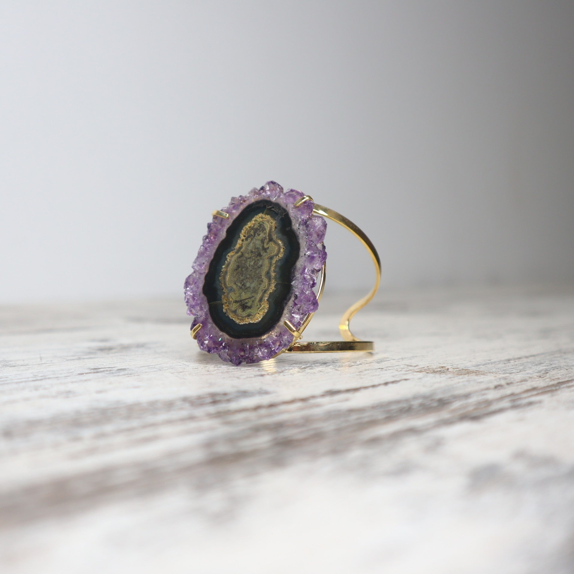 An incredible fusion of natural beauty and spiritual significance, each bracelet features a stunning stalactite slice, showcasing intricate layers formed over millennia through mineral-rich water deposits in Brazilian caves. These unique formations symbolize patience, inner growth, and the unfolding of one's spiritual journey.