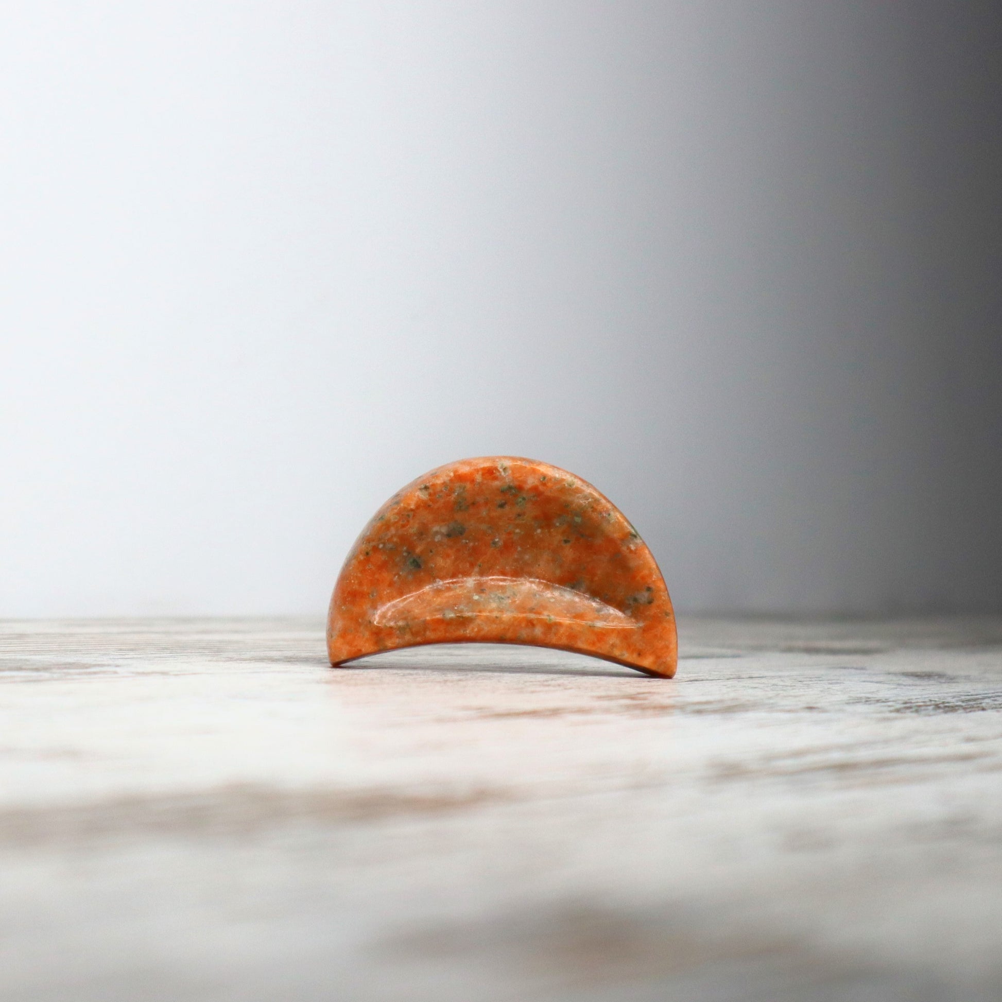 This hand-carved Sunstone Moon Bowl shines with vibrant orange tones and a soft golden shimmer, shaped into a celestial crescent that symbolises light, flow, and inner power. Perfect for holding your favourite tumbles, rings, or sacred intentions, this piece infuses your space with joy, vitality, and warmth. 🧡